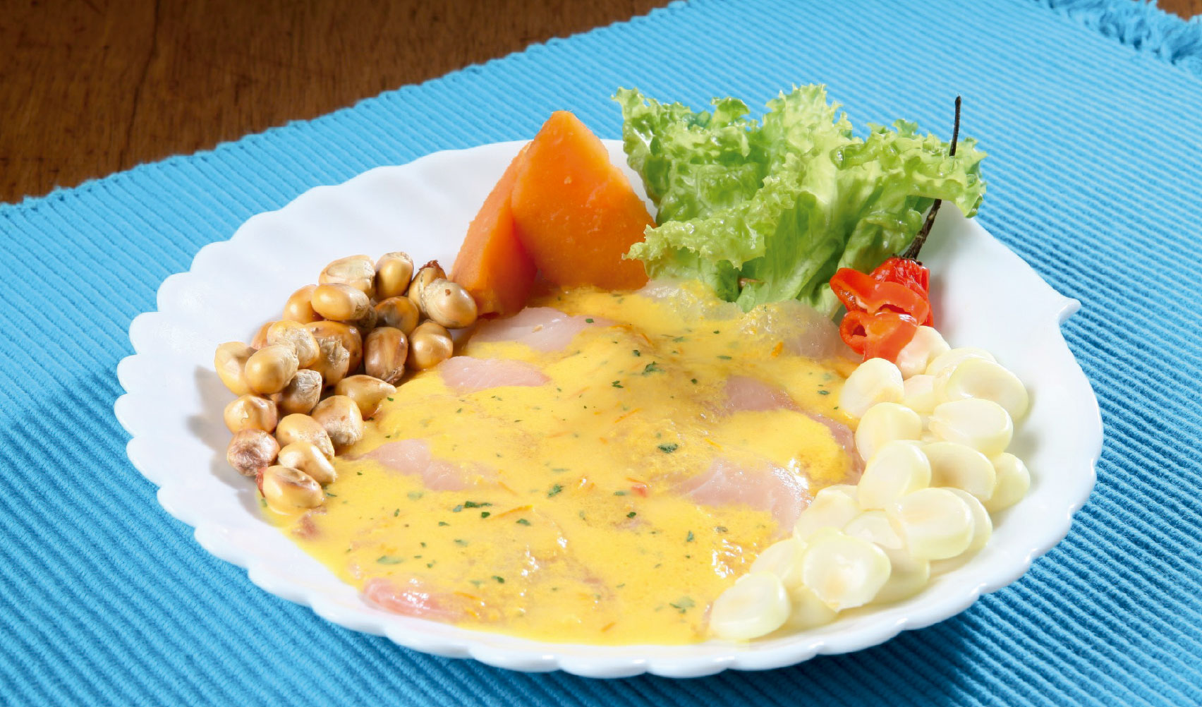 - Tiradito de pescado al ají amarillo (4 porciones): Corta 400 g de pescado fresco, idealmente de carne blanca, en láminas muy delgadas y colócalas ordenadamente en un plato bien frío. En una licuadora procesa 4 cucharadas de ají amarillo en pasta, 1 taza de leche evaporada, el jugo de los 12 limones frescos, 1 cucharada de ajo en pasta, pimienta al gusto, ½ cucharadita de sal y ½ cucharadita de AJI-NO-MOTO®. De esta manera, podrás reducir el sodio manteniendo el buen sabor. Licúa hasta obtener una salsa homogénea y cremosa. Luego, vierte la preparación sobre el pescado justo antes de servir para mantener su textura y termina decorando con culantro finamente picado y maíz cancha.