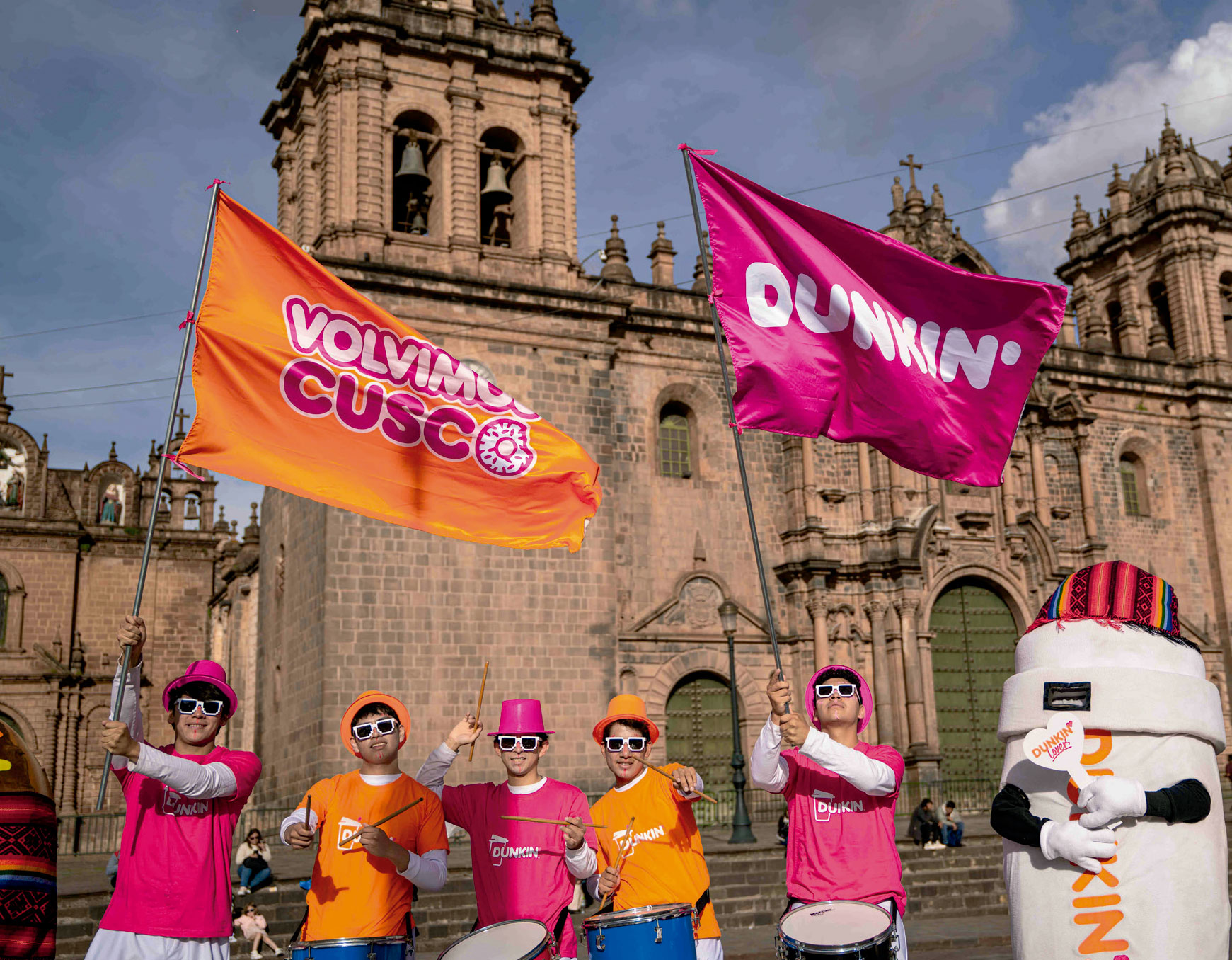 Para celebrar este importante hito, la marca organizó una colorida comparsa que recorrió algunos de los puntos más emblemáticos de la ciudad, como la Plaza de Armas y el barrio de San Blas. Durante el recorrido, se repartieron donuts entre turistas y residentes, quienes disfrutaron del sabor y los característicos colores de la marca, mientras tambores y personajes de Dunkin’ animaban las calles.