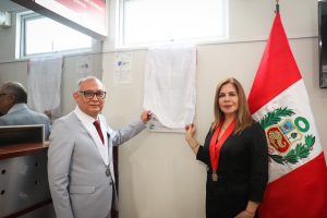 Posteriormente, la titular Cecilia León Velásquez, y el juez decano del CISAJ. El Porvenir Alberto Ramiro Cruzado Aliaga develaron la placa recordatoria de implementación de estas importantes herramientas tecnológicas que contribuirán a una atención más eficaz y eficiente.