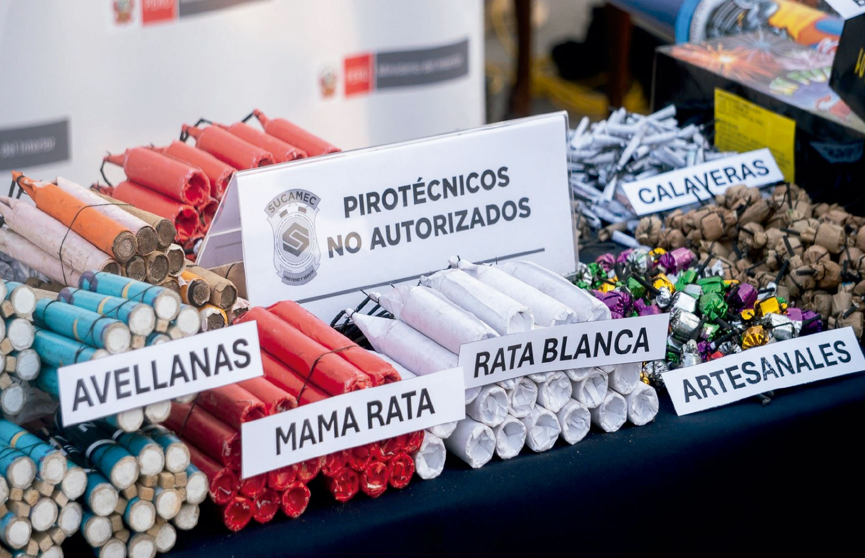 Las denominadas ‘rata blanca’ y ‘mama rata’ encabezan este listado debido a su burda fabricación, aseguró Ricardo Luján Delgado, vocero de Sucamec. “Es un cohete pirotécnico de fabricación burda, que carece de control de calidad y es fácilmente identificable por carecer de marcas, códigos o etiquetas de autorización”, explicó.