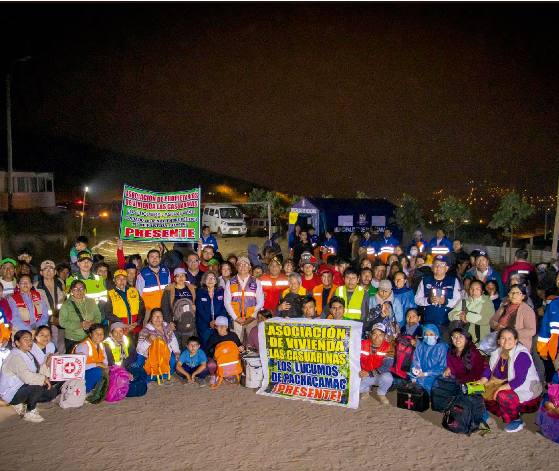 Cabe destacar el simulacro realizado en la Asociación Buena Vista y la Asociación de Vivienda Las Casuarinas en Pachacámac, con la participación de personal municipal, Compañía de Bomberos Voluntarios Pachacámac 160, la Red Integrada de Salud, la Comisaría de Pachacámac y la entusiasta participación de vecinos de todas las edades.